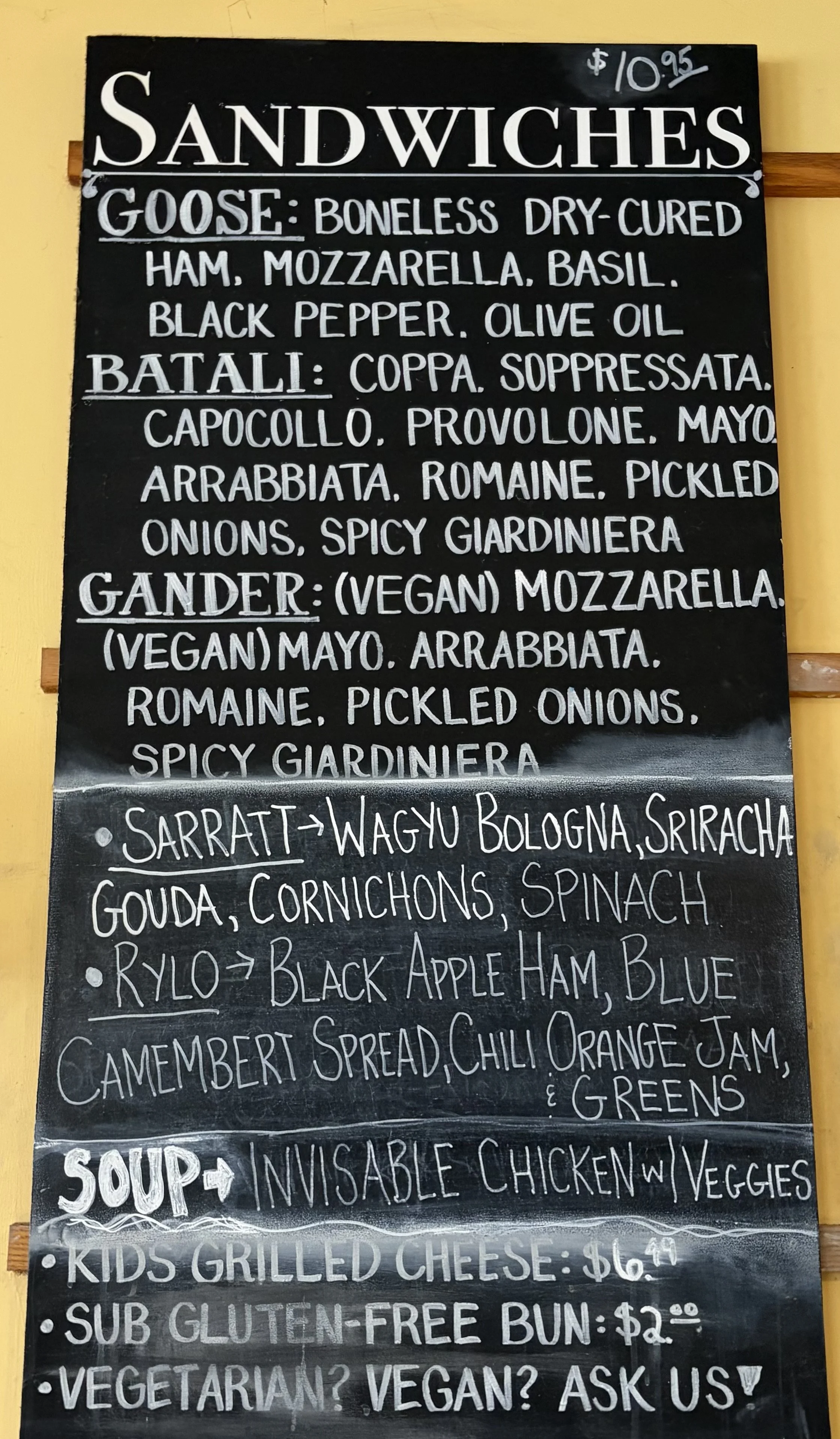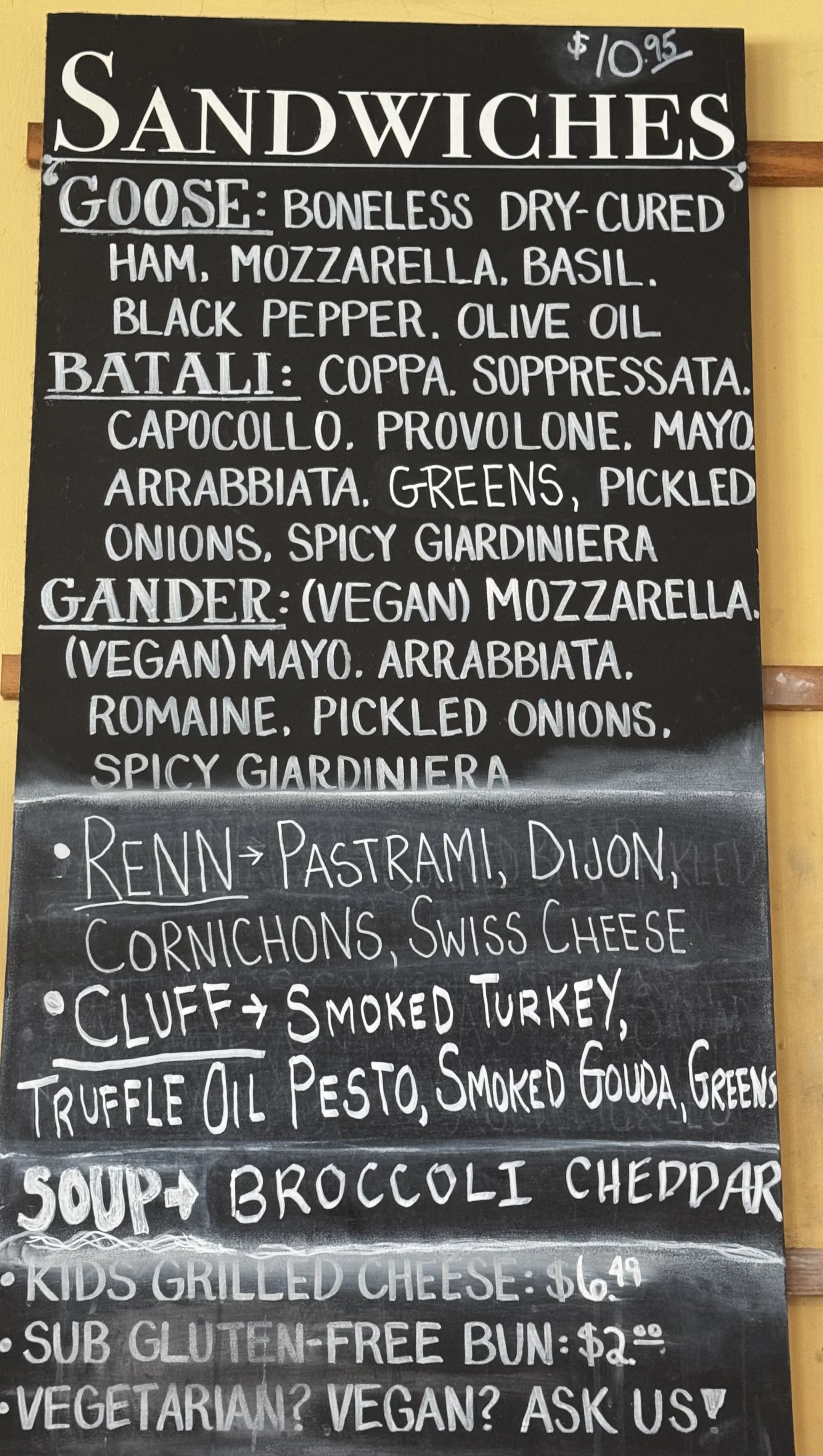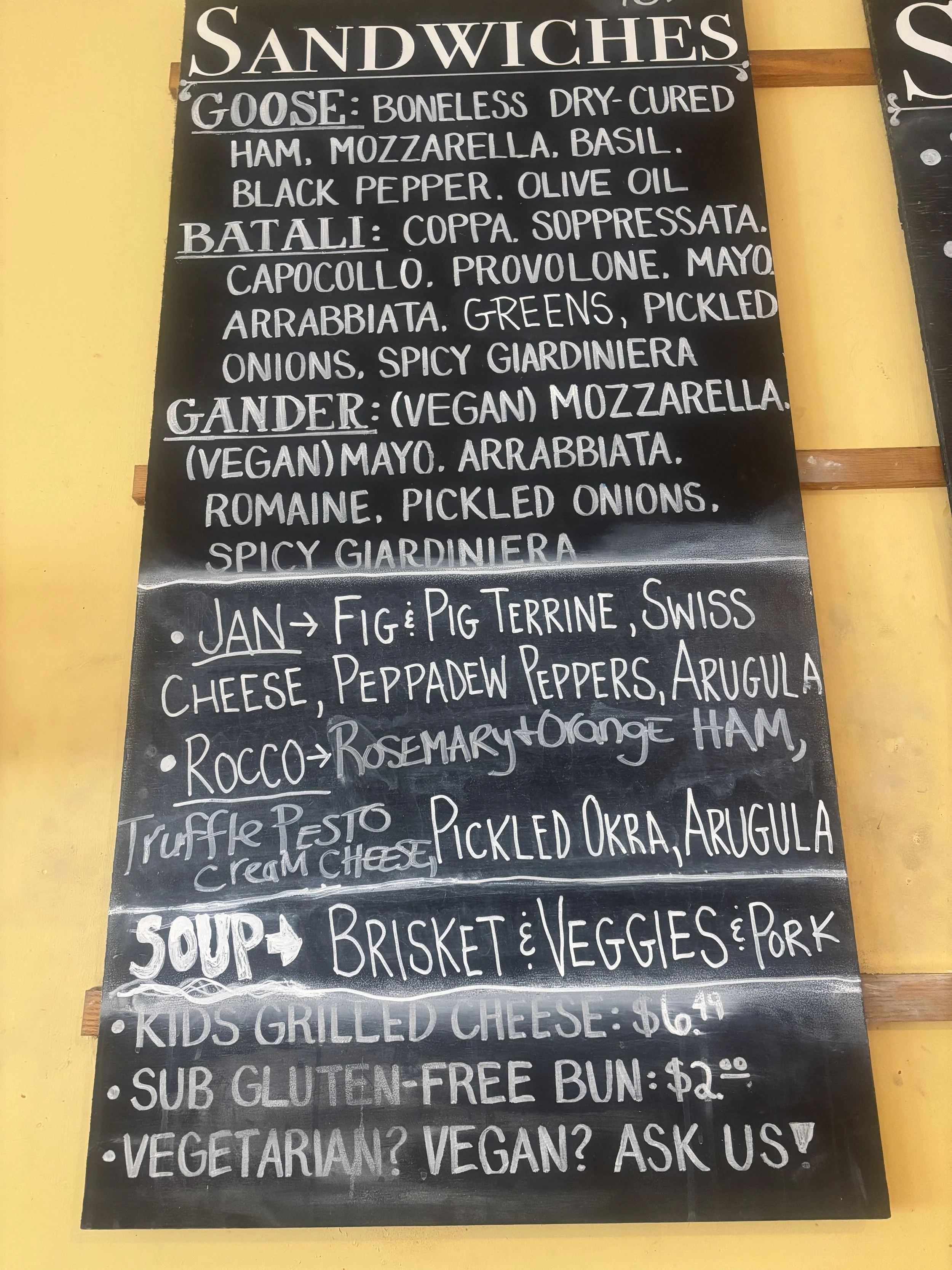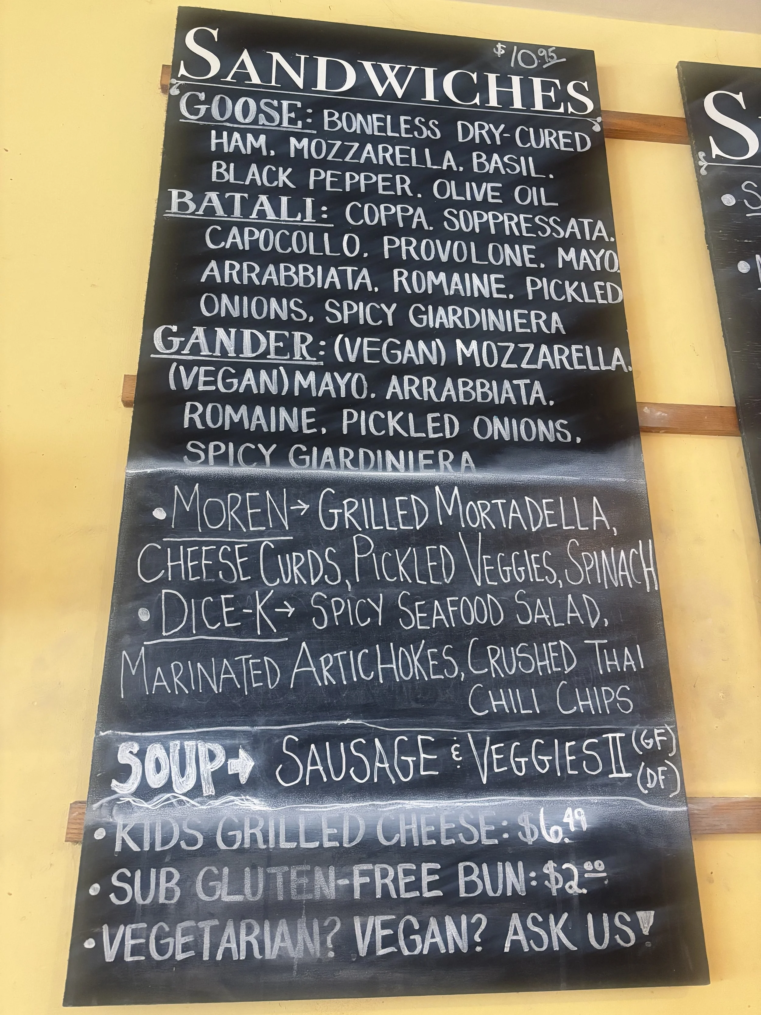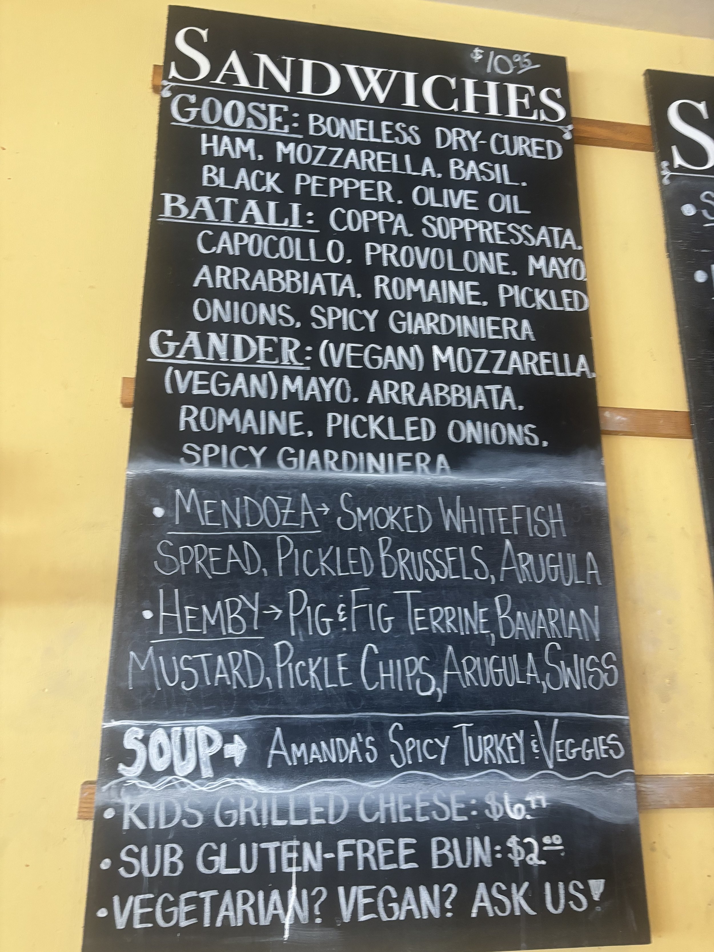 today's sandwiches and soups posted below