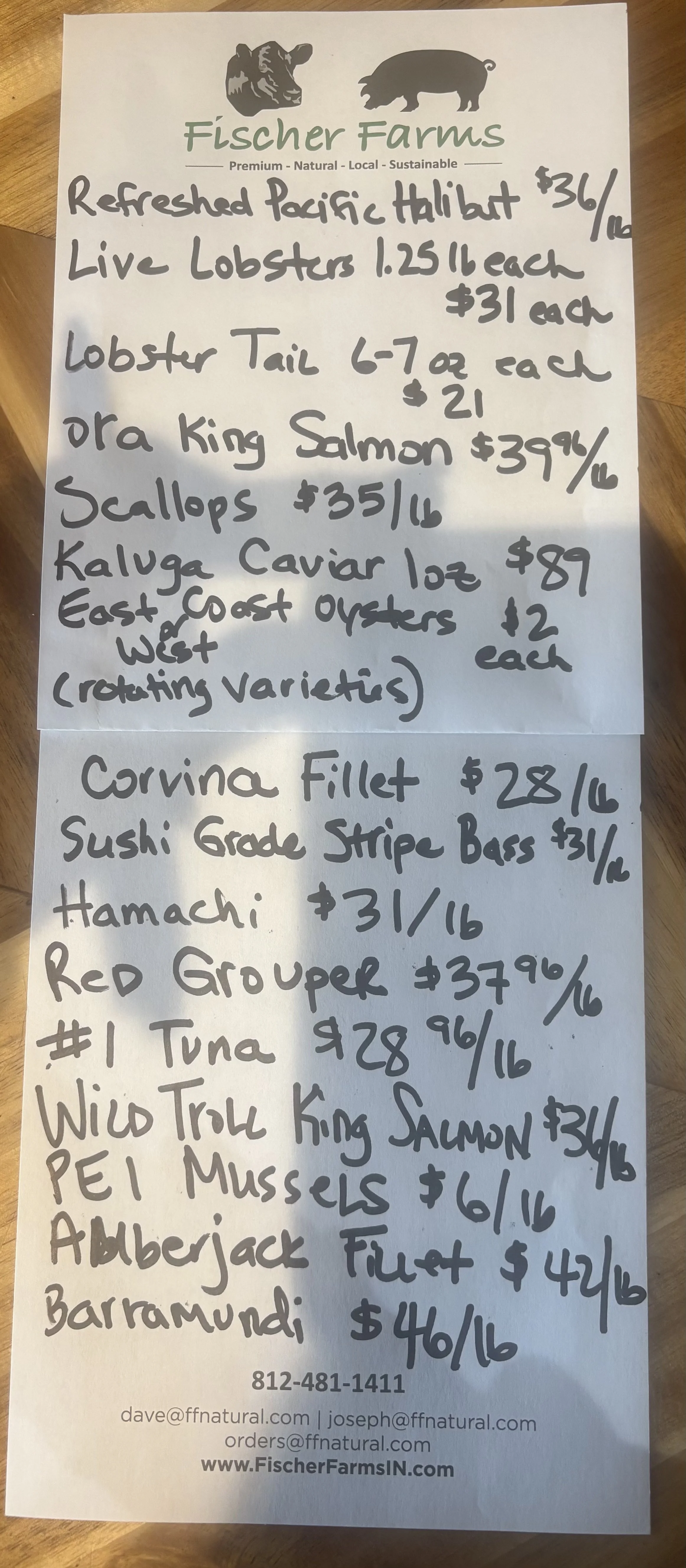 this week's catch list of fresh seafood posted below
