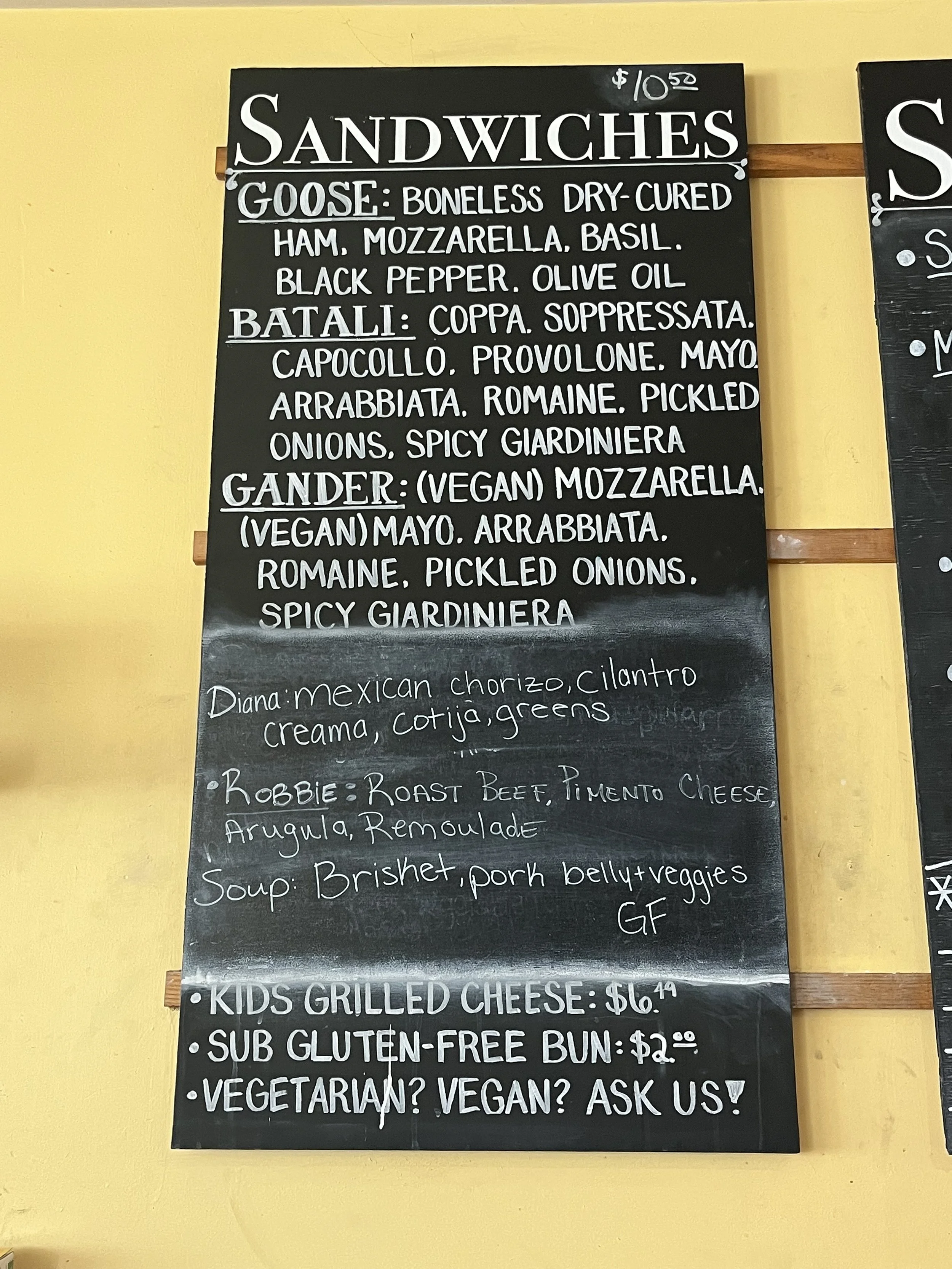 today's sandwiches and soups posted below